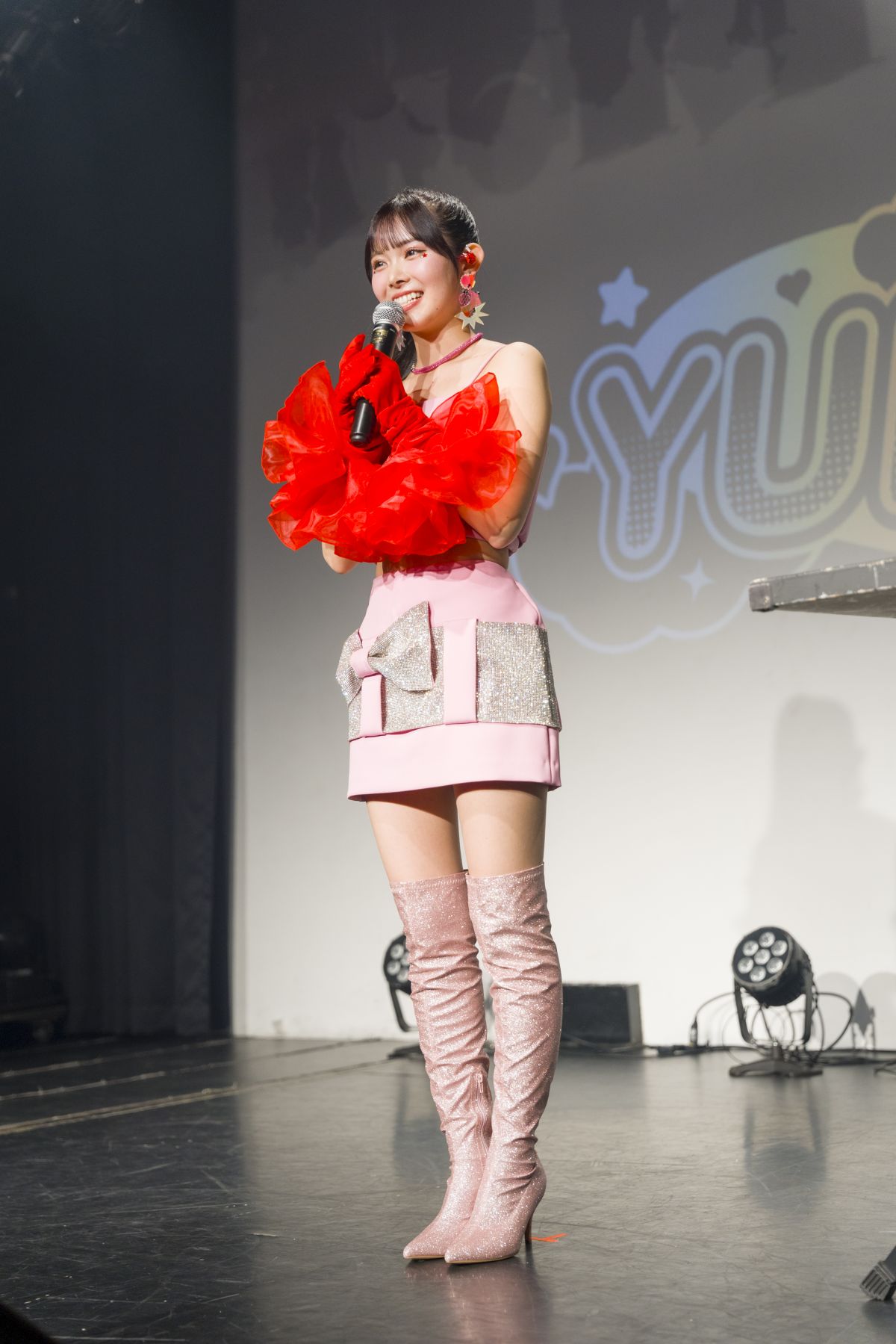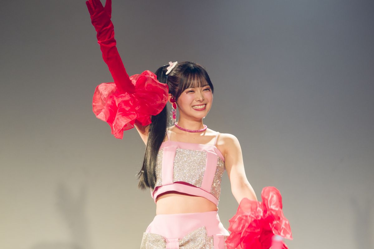後半では、真っ赤なライトに包まれ、パワフルなシャウトからスタートした『ガタメキラ』を力強く歌い上げると、「久しぶりに歌った! 楽しい~!」と笑顔に。そしてソロデビュー曲『きらめきDaydream』を披露する前に、コールのレクチャーをし、グッと距離が縮まる中、初披露ということもあり「緊張しちゃう!」と呟くと、ファンから「みんなもいるよ!」と力強いひと言がかかり一気に緊張が解けた様子。みんなのクラップと、聴くだけで元気になるようなパワフルでハッピーな曲を歌い上げ、何度も感謝を伝え、「本当にみんなが大好きです! また一緒に遊ぼうね!」と叫び、本編は終了。
