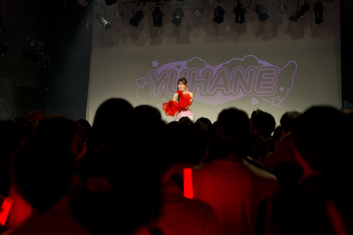 開演時間になり、会場が暗転すると同時に、思い思いに「夢羽!」と大きく名前を叫ぶ声が聞こえ、ファンがこの日を待ち望んでいたことが伝わってくる。その声に応えるように、夢羽がステージに登場すると、大きな歓声が上がり、客席は真っ赤なペンライトで染まっていく。一曲目に披露された『私は最強』での第一声となる「さぁ 怖くはない」という声は、まさに彼女の心情を表現しているようで、身体中からあふれ出る歌声はとても力強く、自信に満ちている。その歌の実力はさらに磨きがかかり、“私は最強”という言葉に説得力を持たせていく。