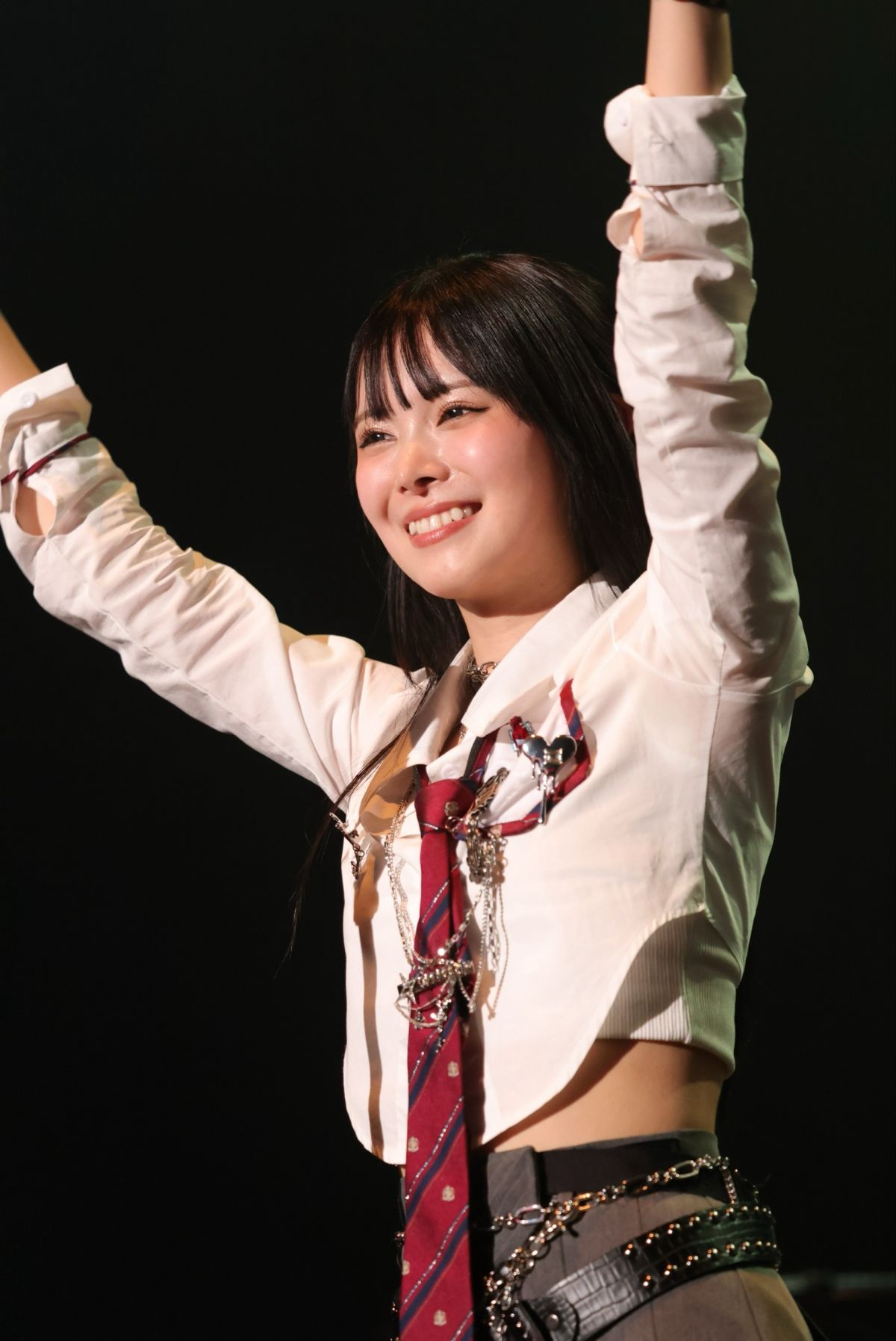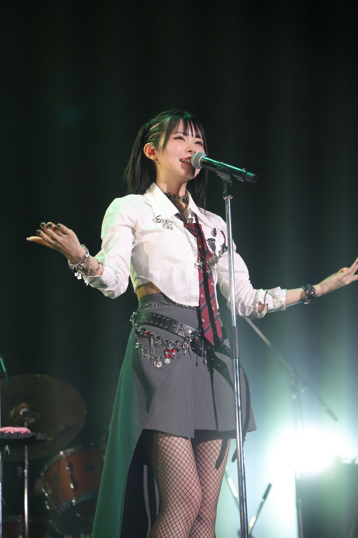 『POCKET』のジャケットで着ていた制服をライブ用にロックにアレンジした衣装に身を包み、
