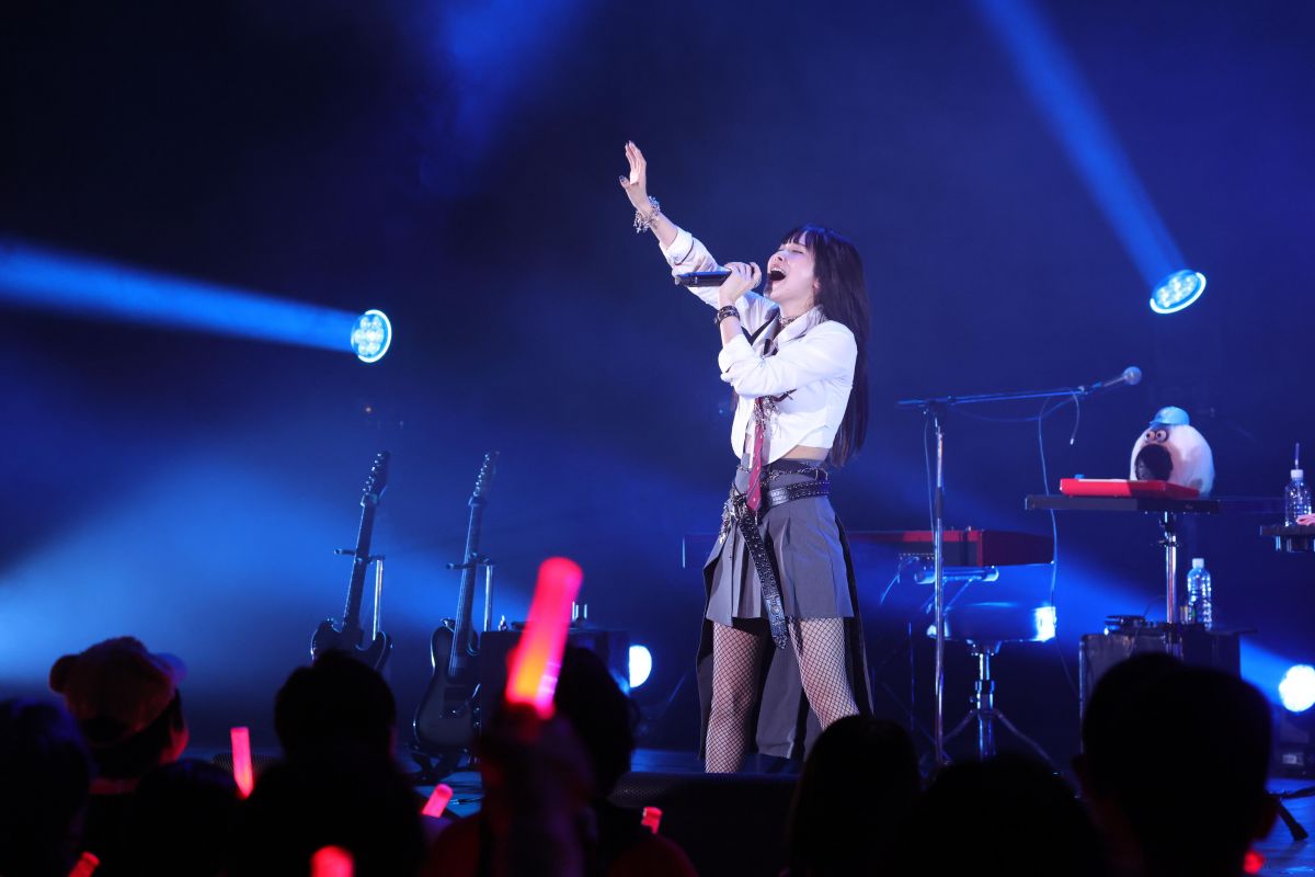 ラブレターとして受け取ってもらえたらなって思って歌います」と話して始まった、彼女が作詞を務めた『メイクユーハッピー』をバンドバージョンで歌唱。